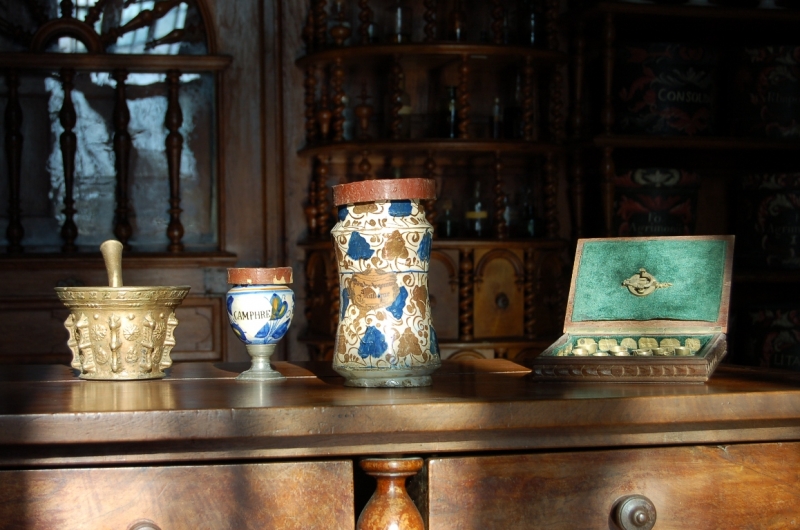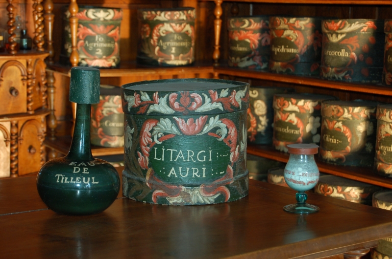 Légué par Anne de Melun, bienfaitrice de l’Hôtel-Dieu, ce joyau de la pharmacopée de l’époque, nous fait revivre l’ambiance qui régnait en ces lieux. Equipée vers 1675, cette officine hospitalière était encore en activité dans les années 1940. Plus de 650 pièces reposent sur du mobilier Louis XIII dont plus de 140 silènes, boîtes cylindriques en châtaignier servant à la conservation de drogues. Ensemble rare, ces boîtes sont peintes de feuillages et de fleurs formant un cartouche dans lequel est inscrit le nom du simple. Toujours en place depuis des années, le contenu de chaque boite attend patiemment la venue de la religieuse apothicaire…